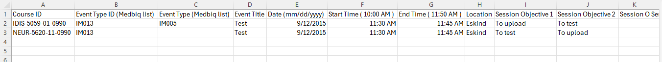 - Session Objective (1-30): Use these columns to specify Session Objectives